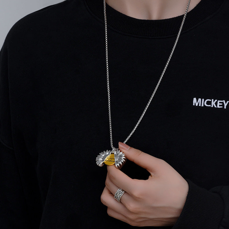 Creative Openable Sunflower Pendant Necklace Fashion Letter Jewelry Gift